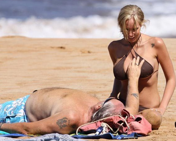 making out on the beach...and they seemed so into each other. Forget the
